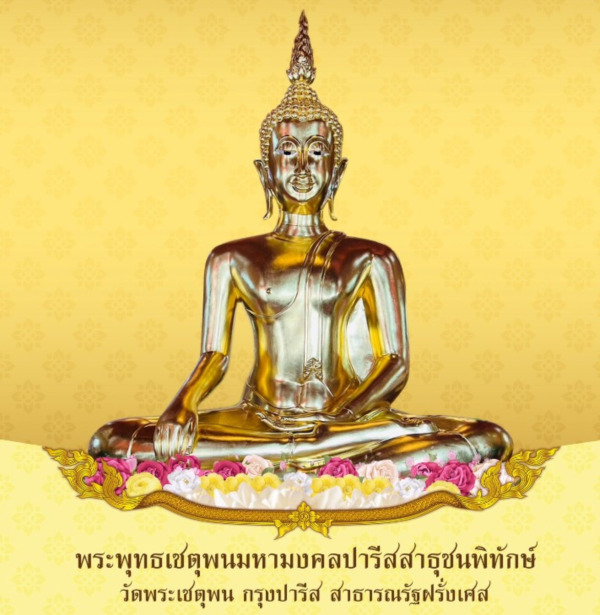 Après cela, limage du Bouddha a été transportée par avion. être inscrit dans le pavillon du mérite Être respecté et adoré par le peuple et exécutez des mantras bouddhistes pour célébrer le Seigneur Bouddha Pour la prospérité des bouddhistes, des Parisiens et des villes voisines. Le jour de Songkran Le samedi 27 avril 2024 (2024) à 17h00 au Wat Phra Chetuphon, Paris, République française.